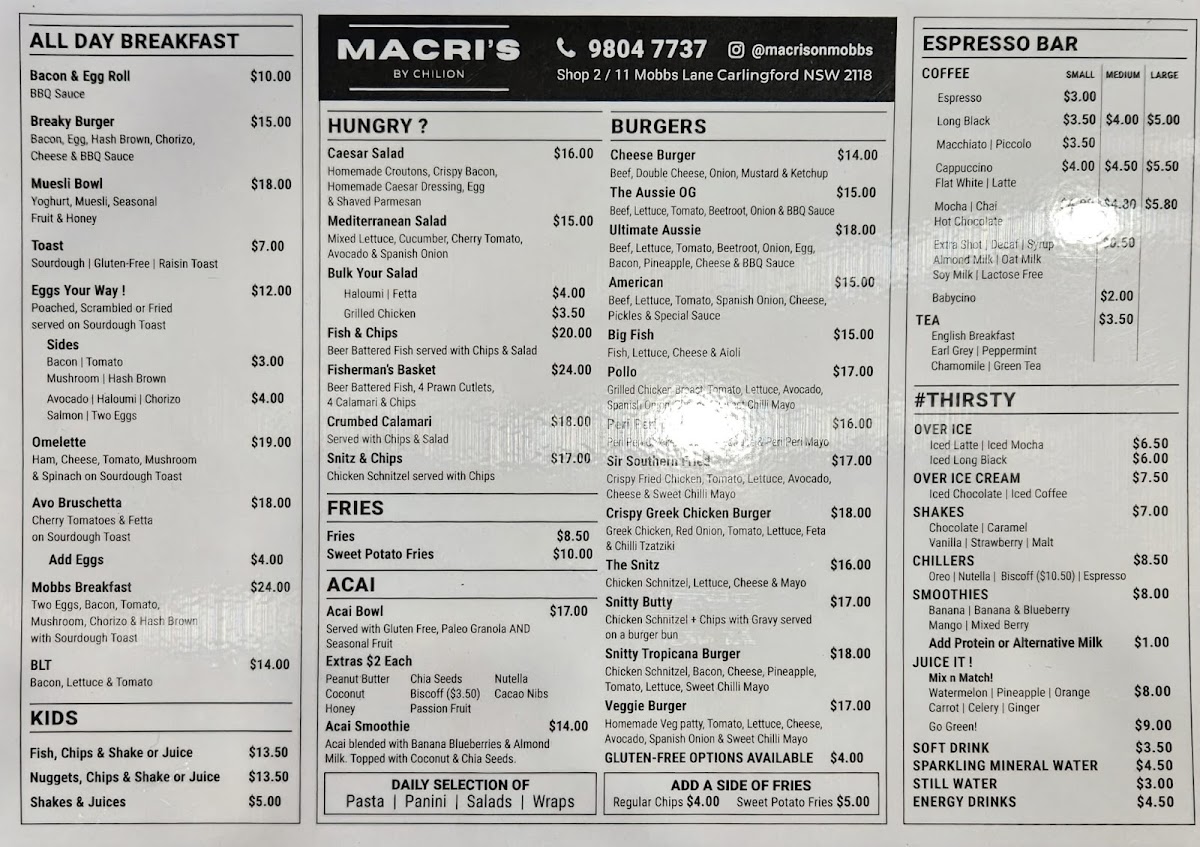 Macri's on Mobbs Menu